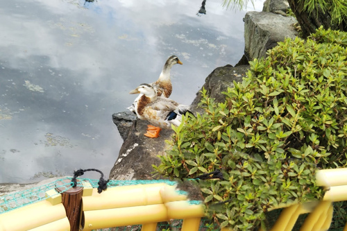 湧き水には時にはカモやアヒルもおり、鯉には餌やりをすることもできます。